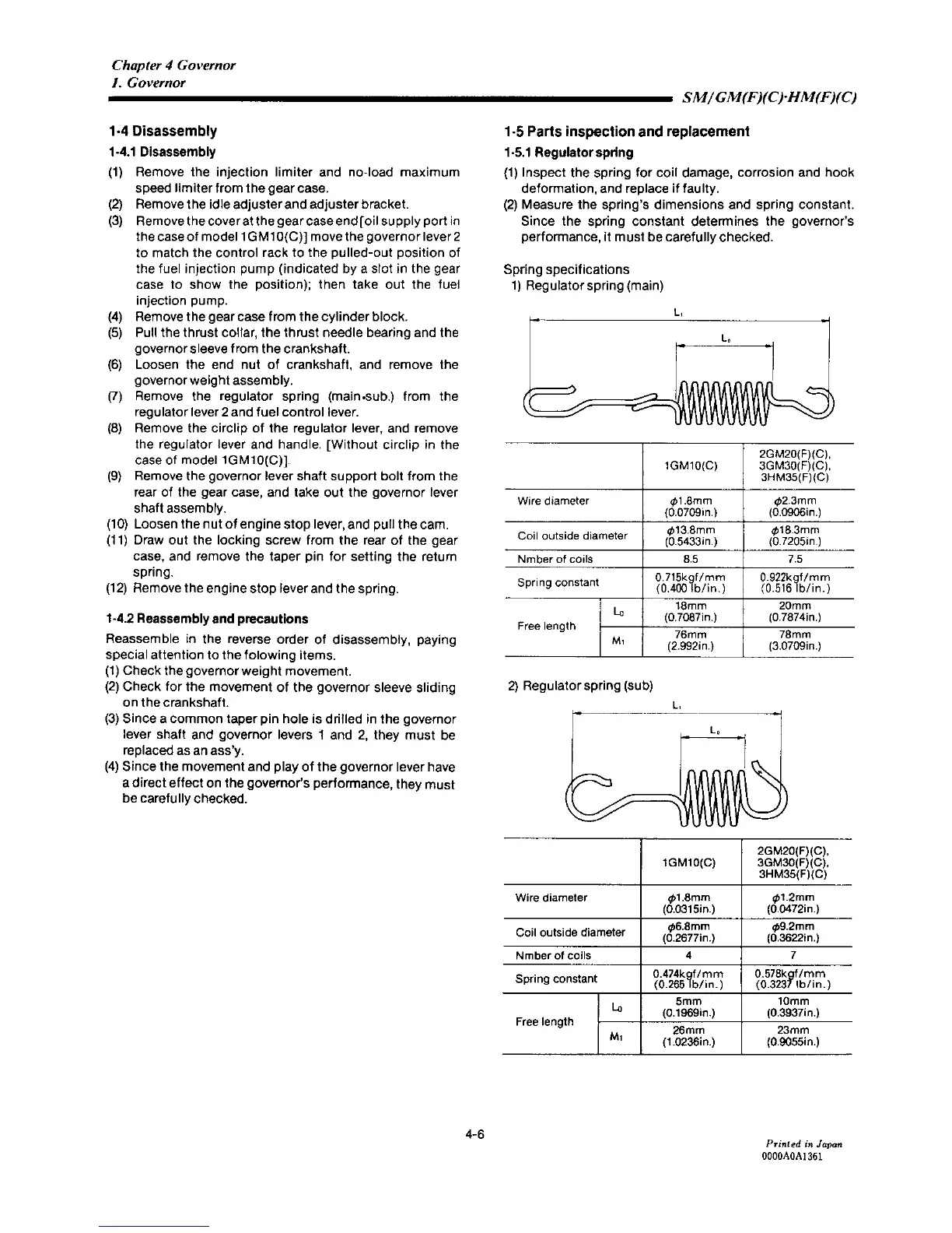 Yanmar 2GM20C - Governor Disassembly; Governor Parts Inspection and Replacement; Regulator Spring
