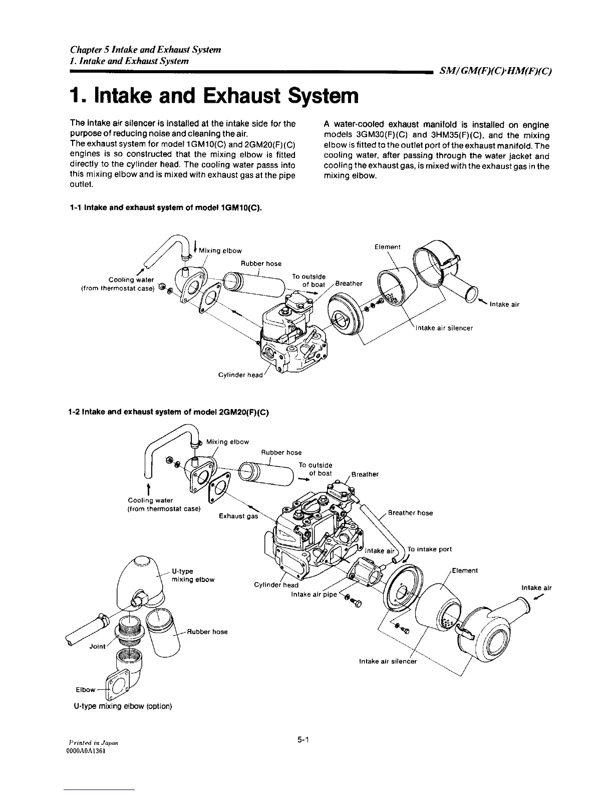 Yanmar 2GM20C - Intake and Exhaust System of Model 1 GM10(C); Intake and Exhaust System of Model 2 GM20(F)(C)