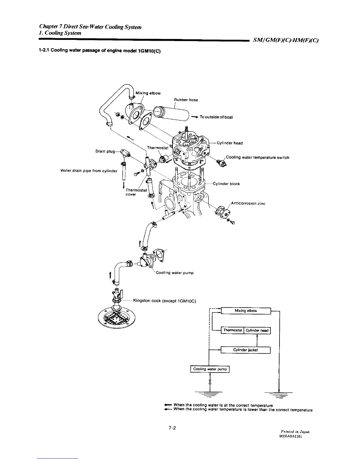 Yanmar 2GM20C - Cooling Water Passage of Engine Model 1 GM10(C)