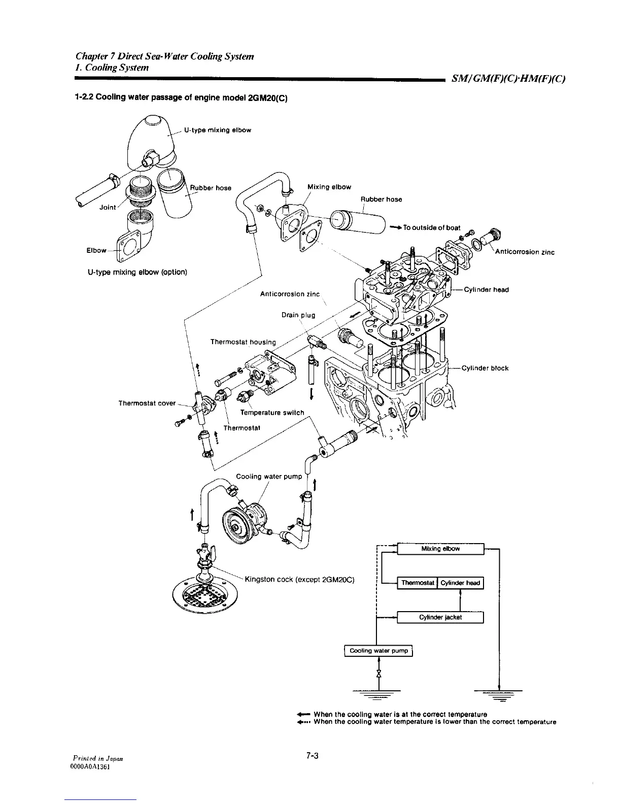 Yanmar 2GM20C - Cooling Water Passage of Engine Model 2 GM20(C)