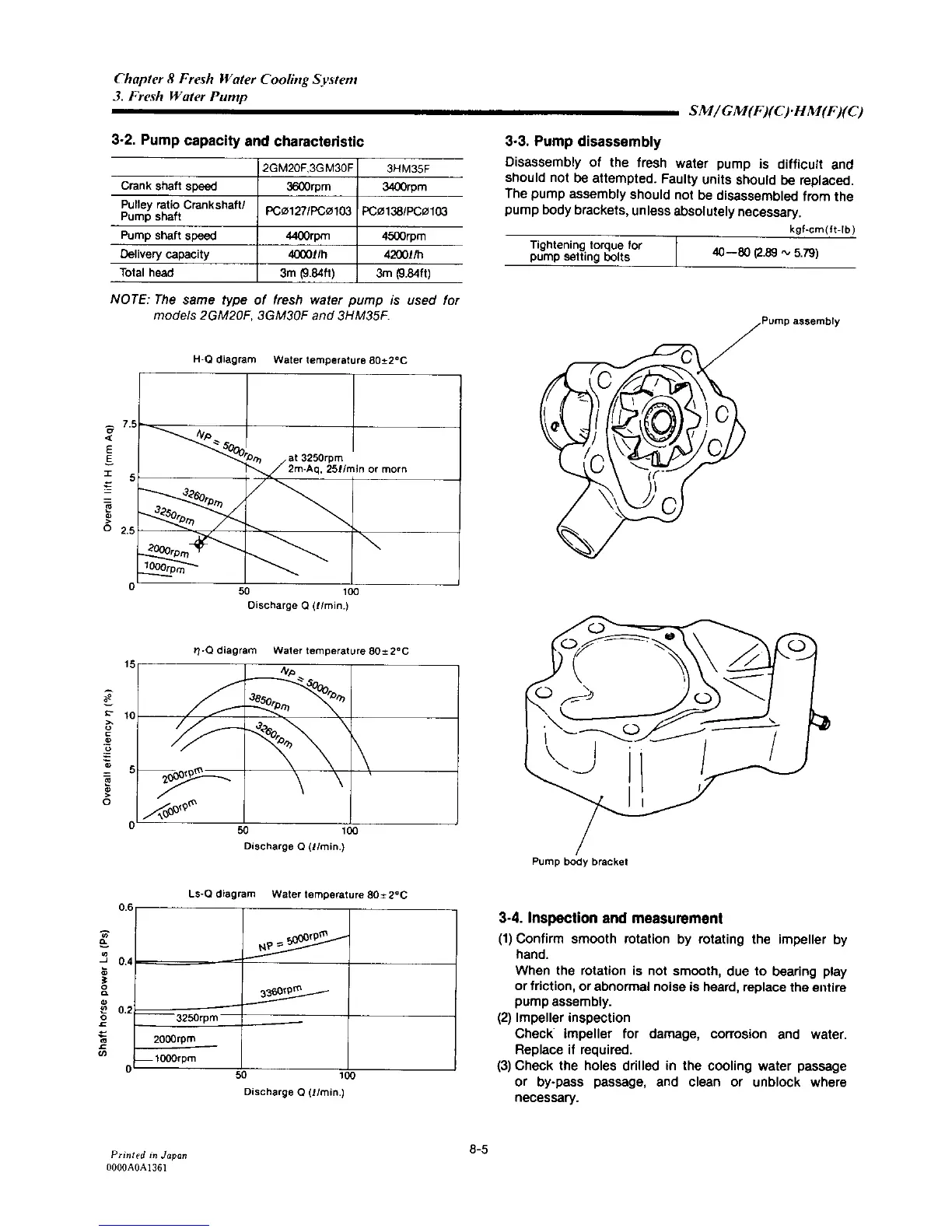 Yanmar 2GM20C - Pump Capacity and Characteristic; Pump Disassembly; Pump Inspection and Measurement