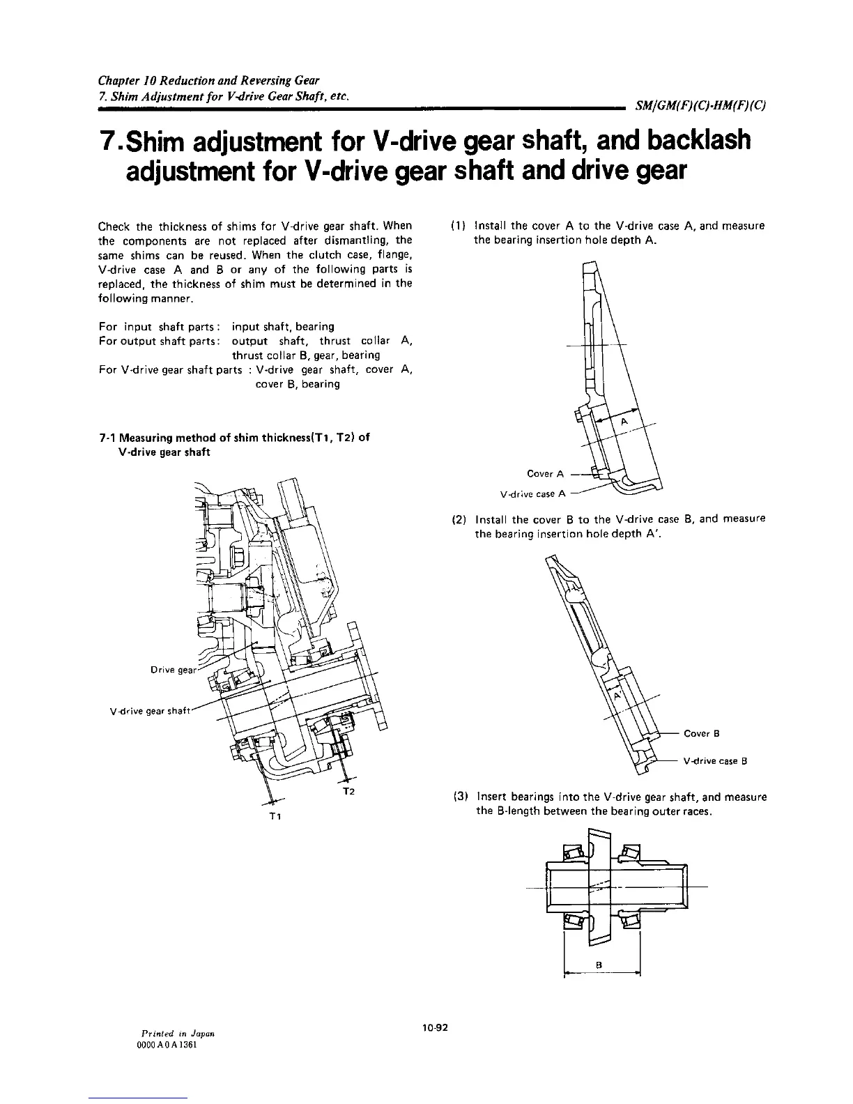 Yanmar 2GM20C - Shim Adjustment for V-Drive Gear Shaft, and Backlash Adjustment for V-Drive Gear Shaft and Drive Gear