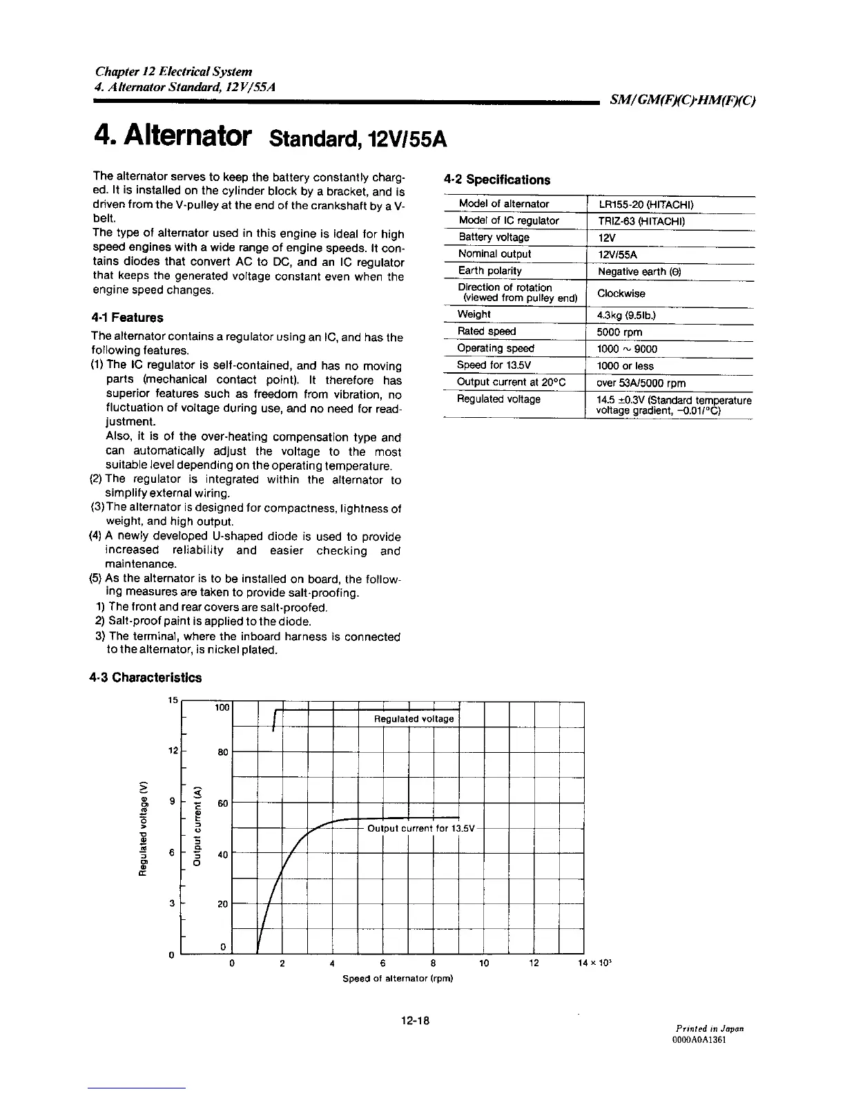 Yanmar 2GM20C - Alternator Features; Alternator Specifications; Alternator Characteristics