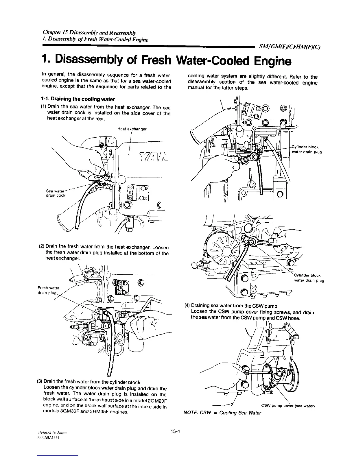 Yanmar 2GM20C - Disassembly of Fresh Water-Cooled Engine; Draining the Cooling Water