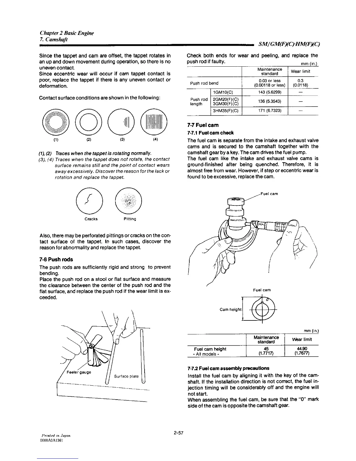 Yanmar 2GM20C - Push Rods; Fuel Cam Check; Fuel Cam Assembly Precautions