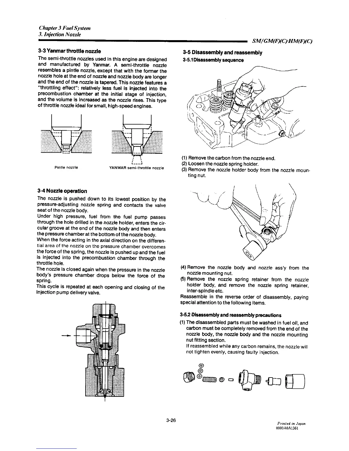 Yanmar 2GM20F - Yanmar Throttle Nozzle; Nozzle Operation; Injection Nozzle Disassembly and Reassembly
