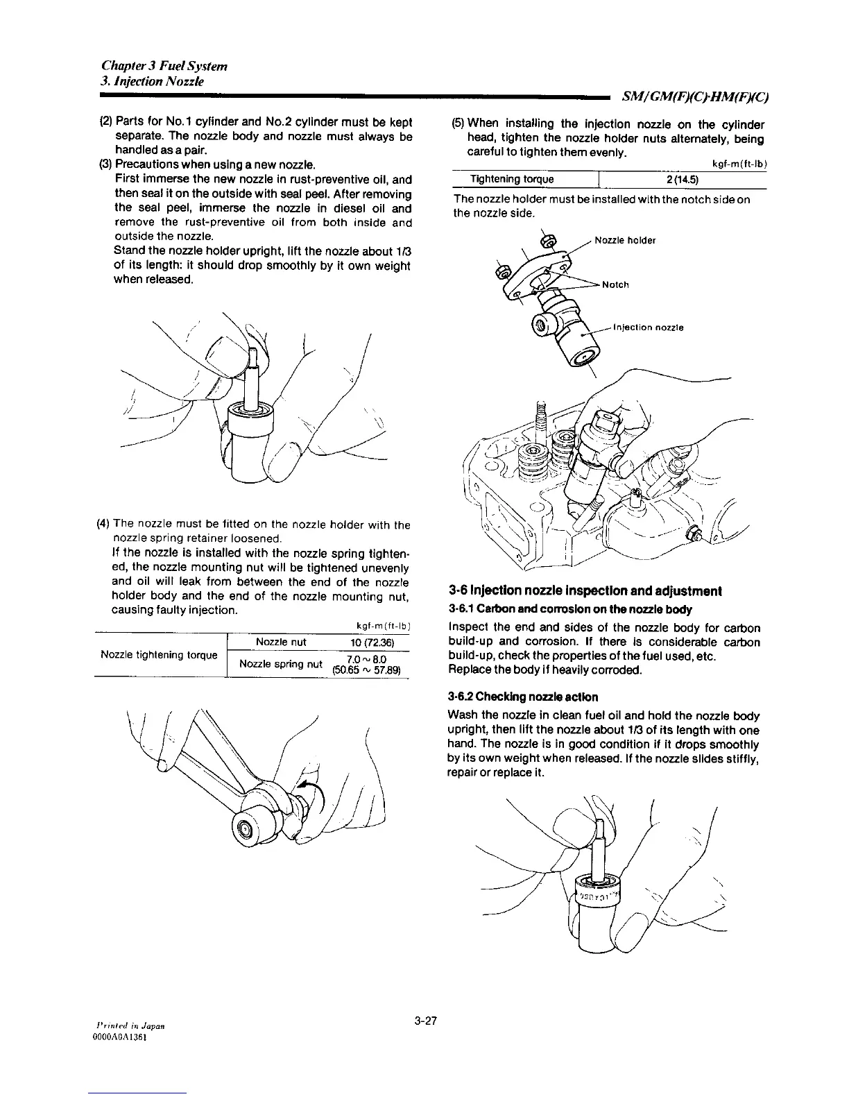 Yanmar 2GM20F - Injection Nozzle Inspection and Adjustment; Carbon and Corrosion on the Nozzle Body; Checking Nozzle Action