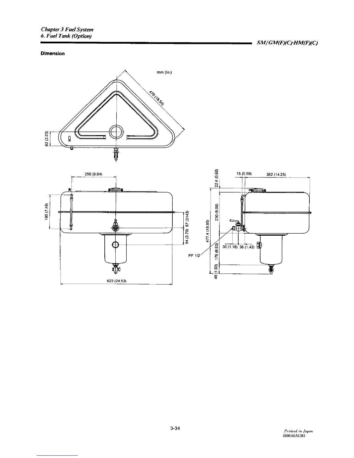Yanmar 2GM20F - Fuel Tank Dimension