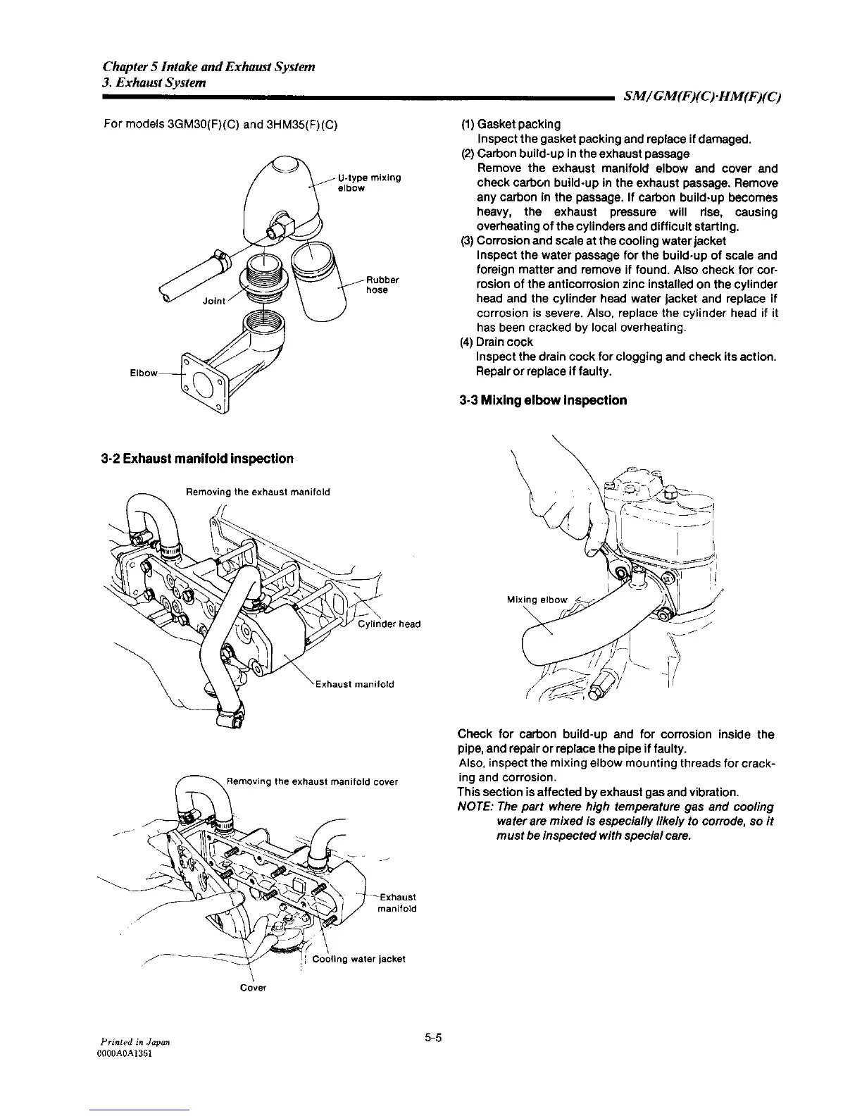 Yanmar 2GM20F - Exhaust Manifold Inspection; Mixing Elbow Inspection