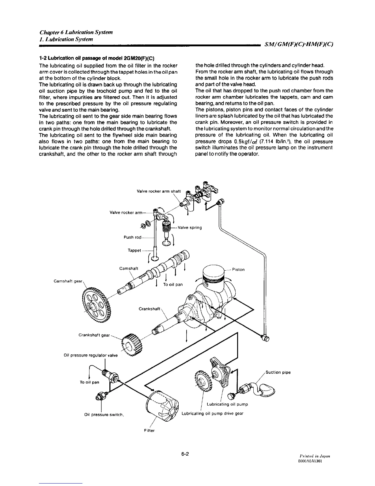 Yanmar 2GM20F - Lubrication Oil Passage of Model 2 GM20(F)(C)
