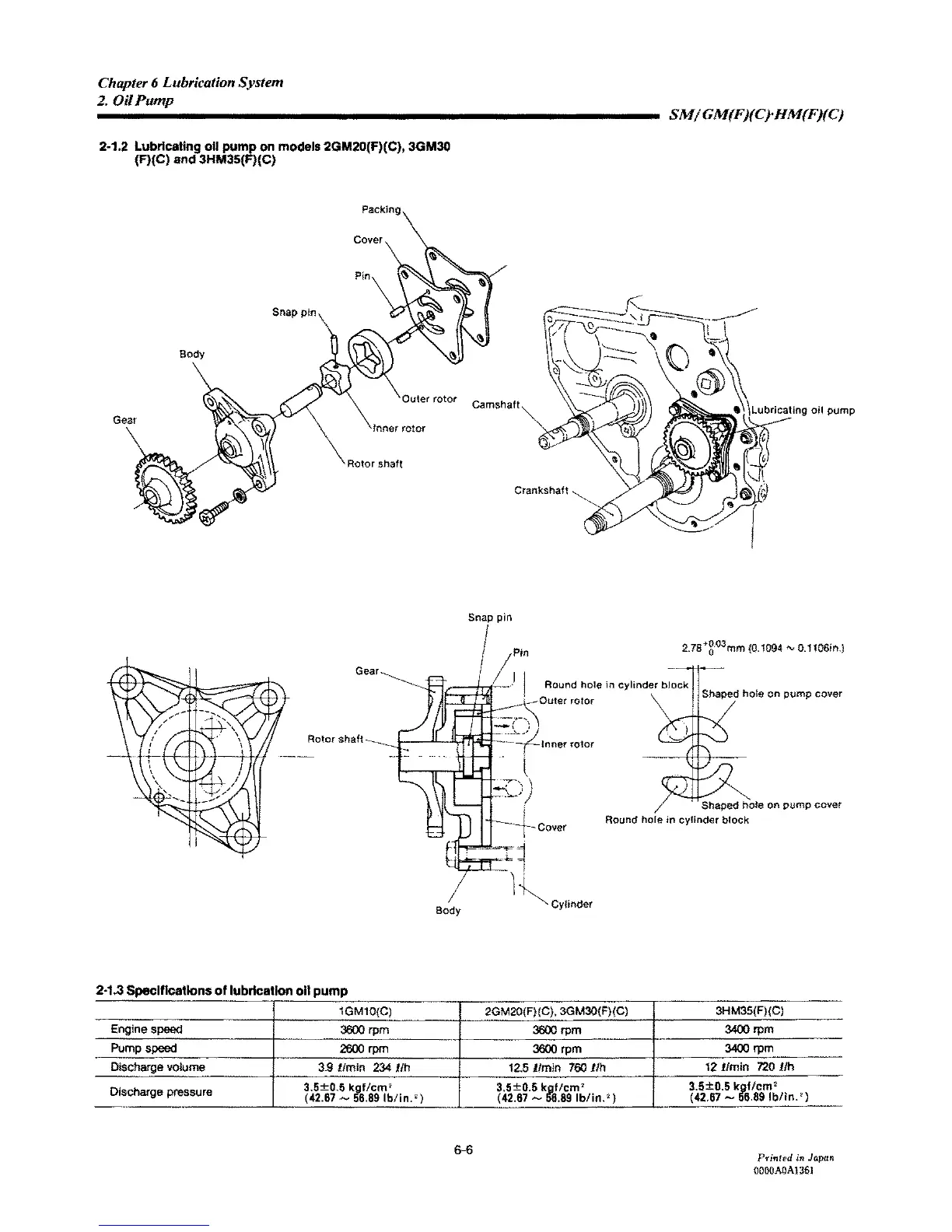 Yanmar 2GM20F - Lubricating Oil Pump on Models 2 GM20(F)(C), 3 GM30(F)(C) and 3 HM35(F)(C); Specifications of Lubrication Oil Pump