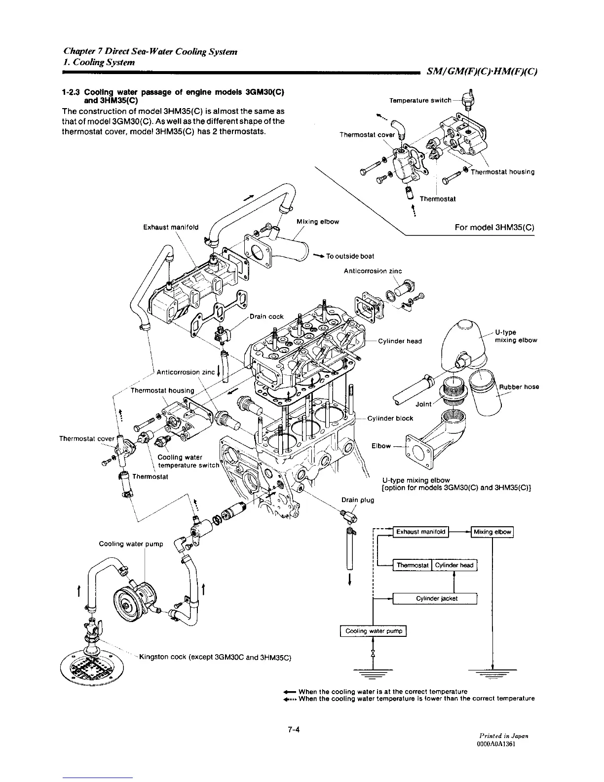 Yanmar 2GM20F - Cooling Water Passage of Engine Models 3 GM30(C) and 3 HM35(C)