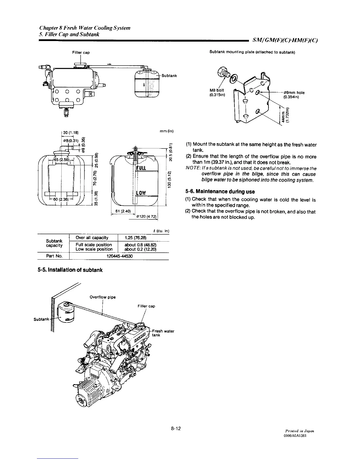Yanmar 2GM20F - Installation of Subtank; Maintenance During Use