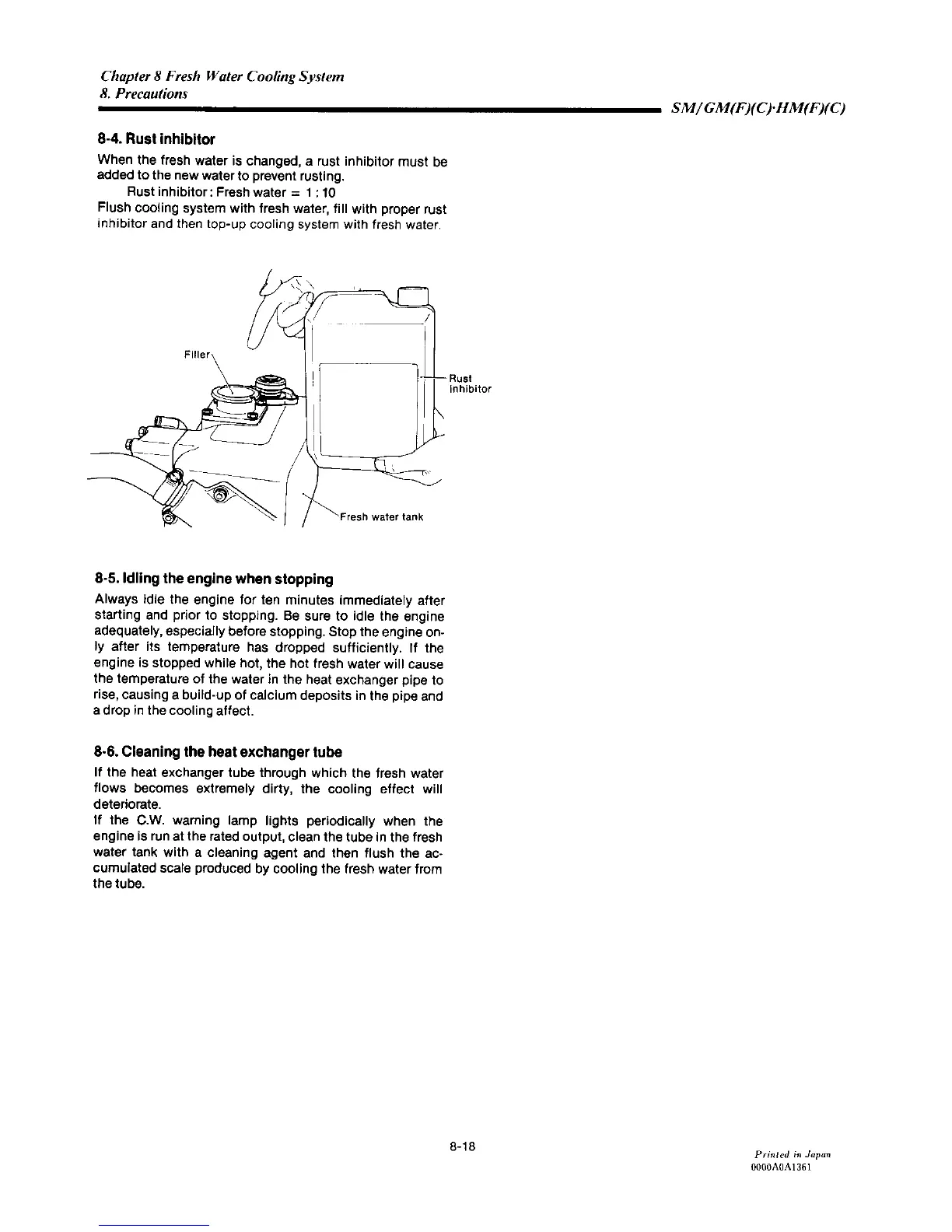Yanmar 2GM20F - Rust Inhibitor; Idling the Engine When Stopping; Cleaning the Heat Exchanger Tube