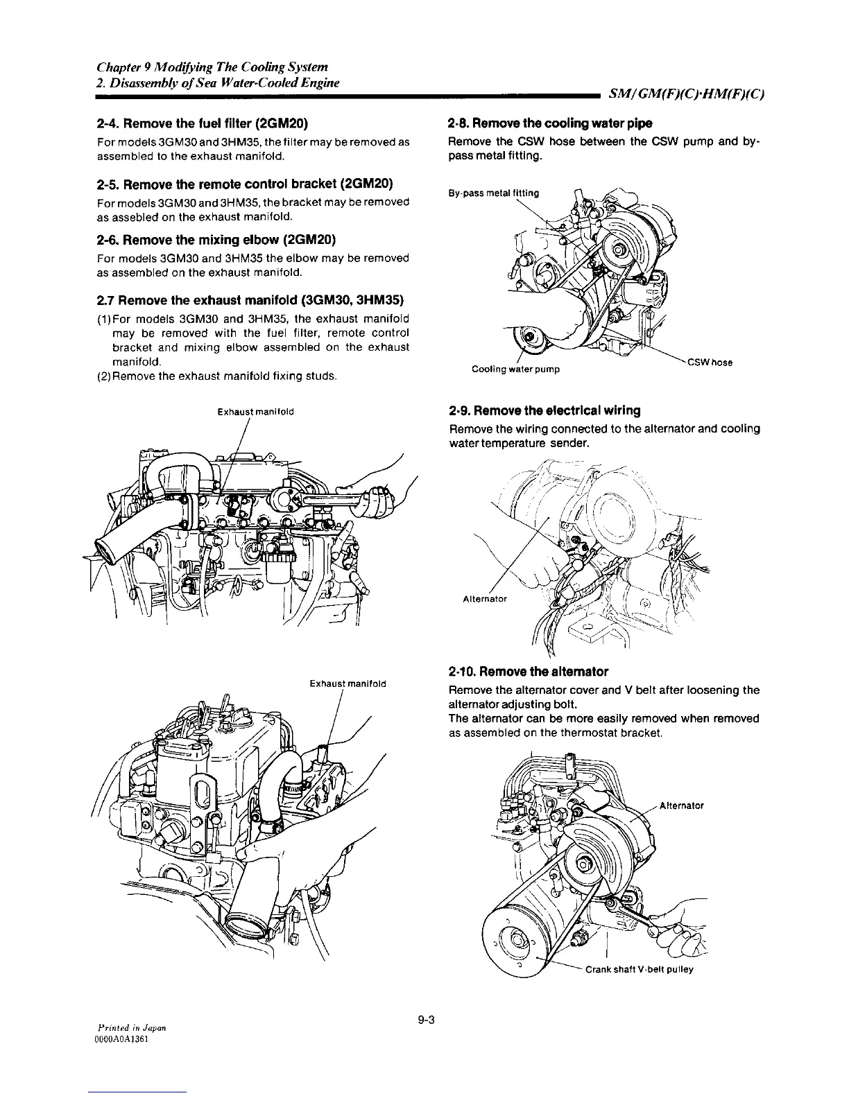 Yanmar 2GM20F - Remove the Fuel Filter; Remove the Remote Control Bracket; Remove the Mixing Elbow; Remove the Exhaust Manifold