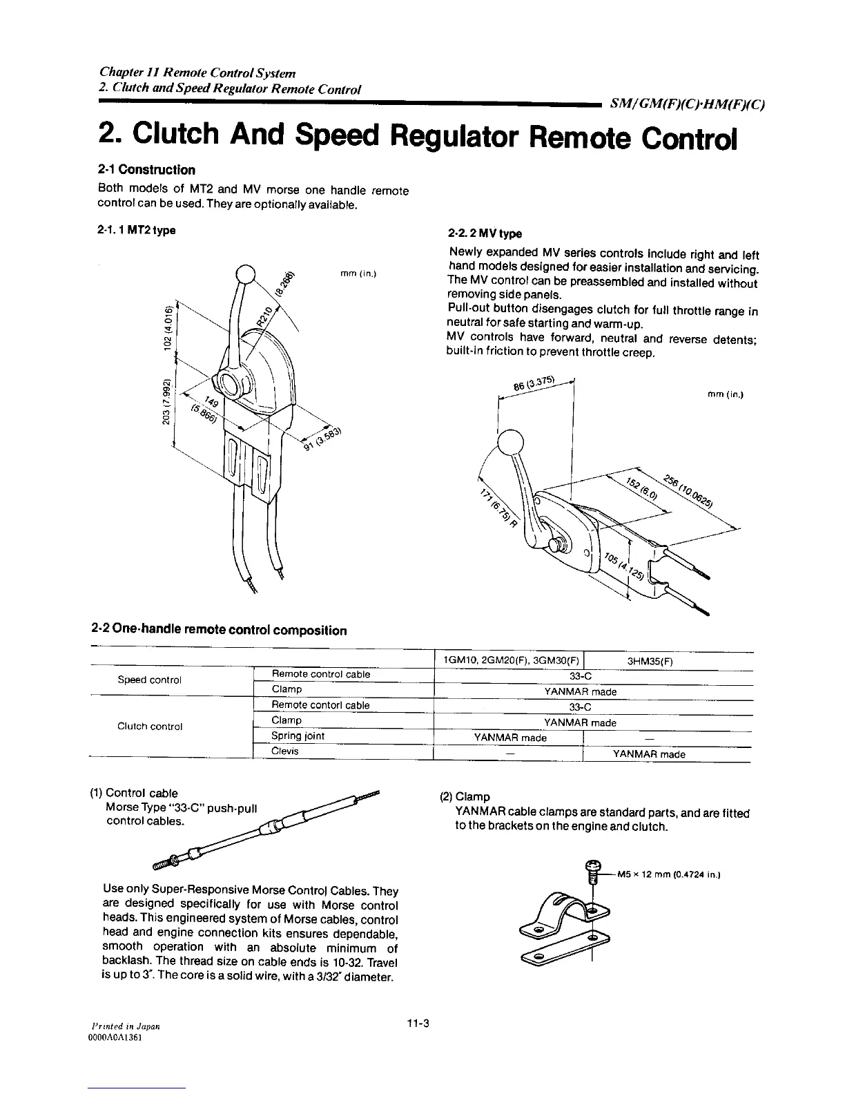 Yanmar 2GM20F - 2. Clutch and Speed Regulator Remote Control
