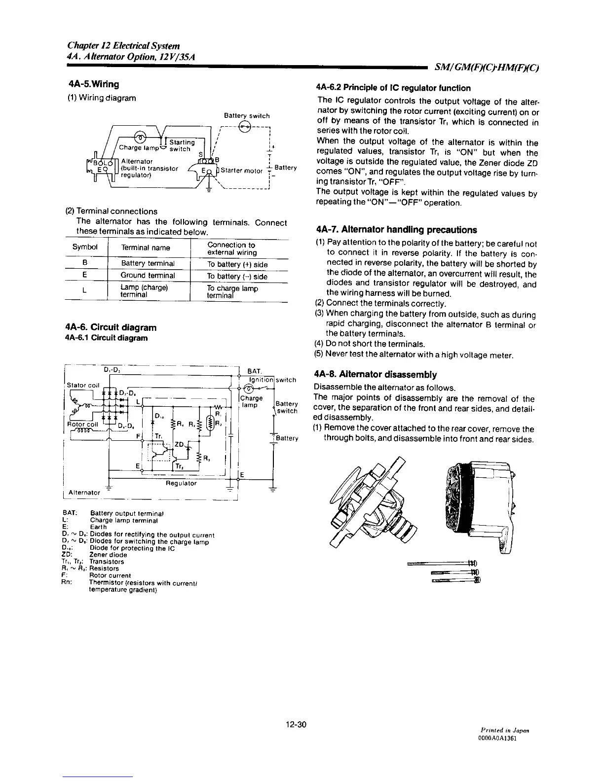 Yanmar 2GM20F - Alternator, Option, 12 V;35 A Wiring; Alternator, Option, 12 V;35 A Circuit Diagram; Alternator, Option, 12 V;35 A Principle of IC Regulator Function