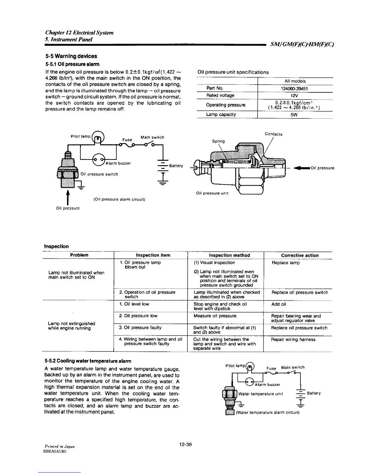 Yanmar 2GM20F - Warning Devices; Oil Pressure Alarm; Cooling Water Temperature Alarm