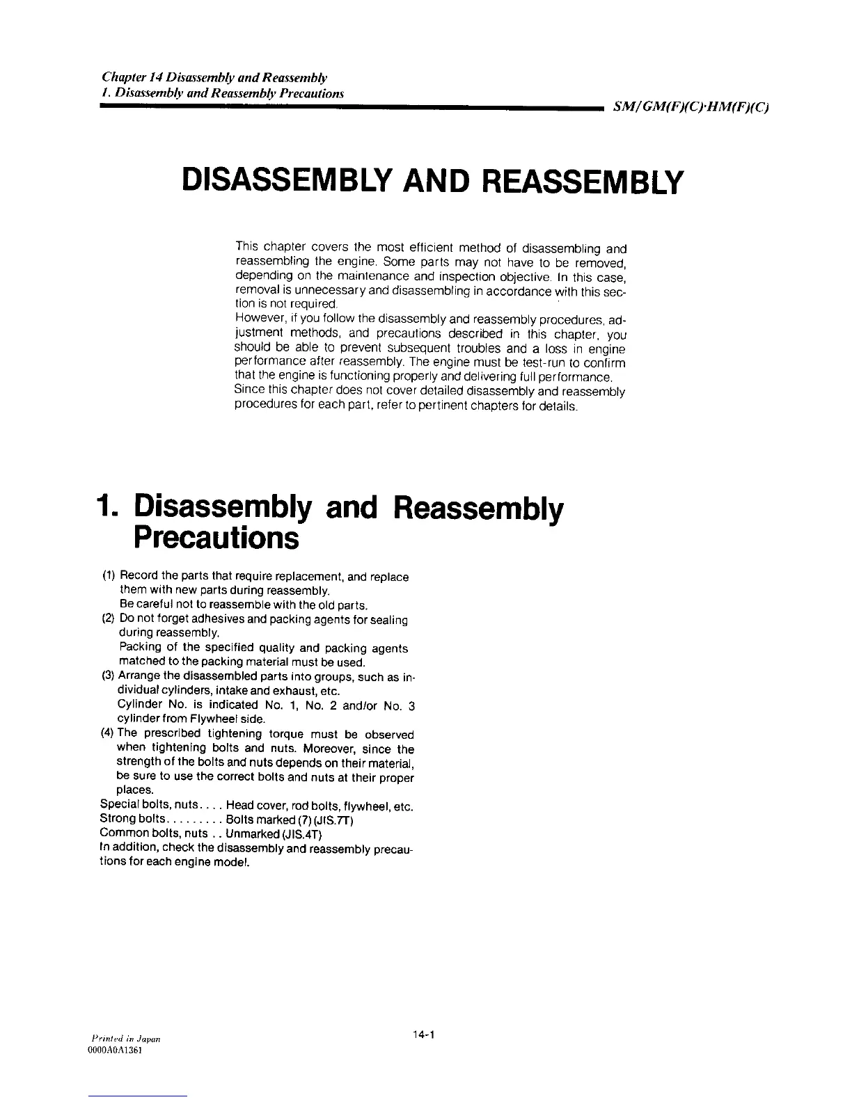 Yanmar 2GM20F - 1. Disassembly and Reassembly Precautions