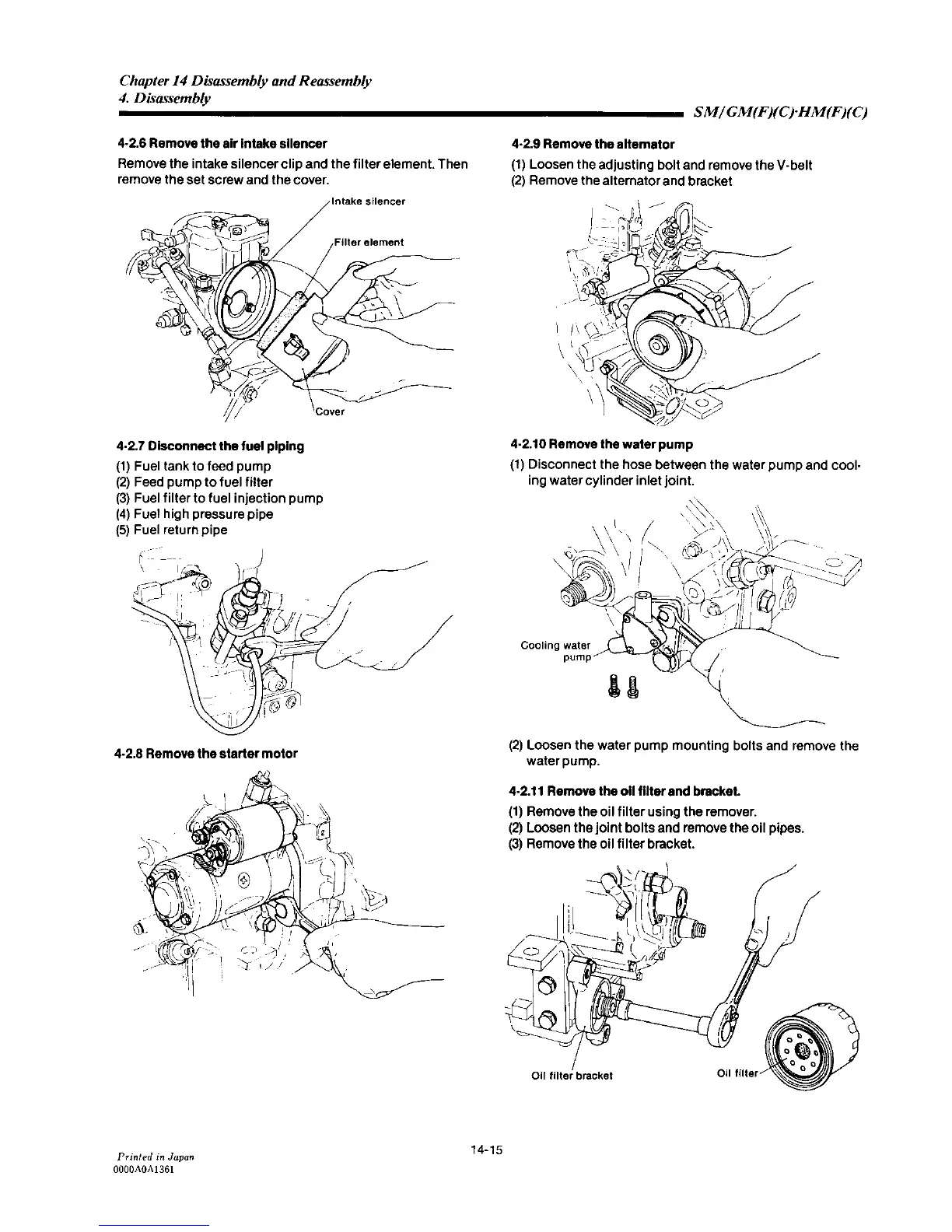 Yanmar 2GM20F - Remove the Air Intake Silencer; Disconnect the Fuel Piping; Remove the Starter Motor; Remove the Alternator