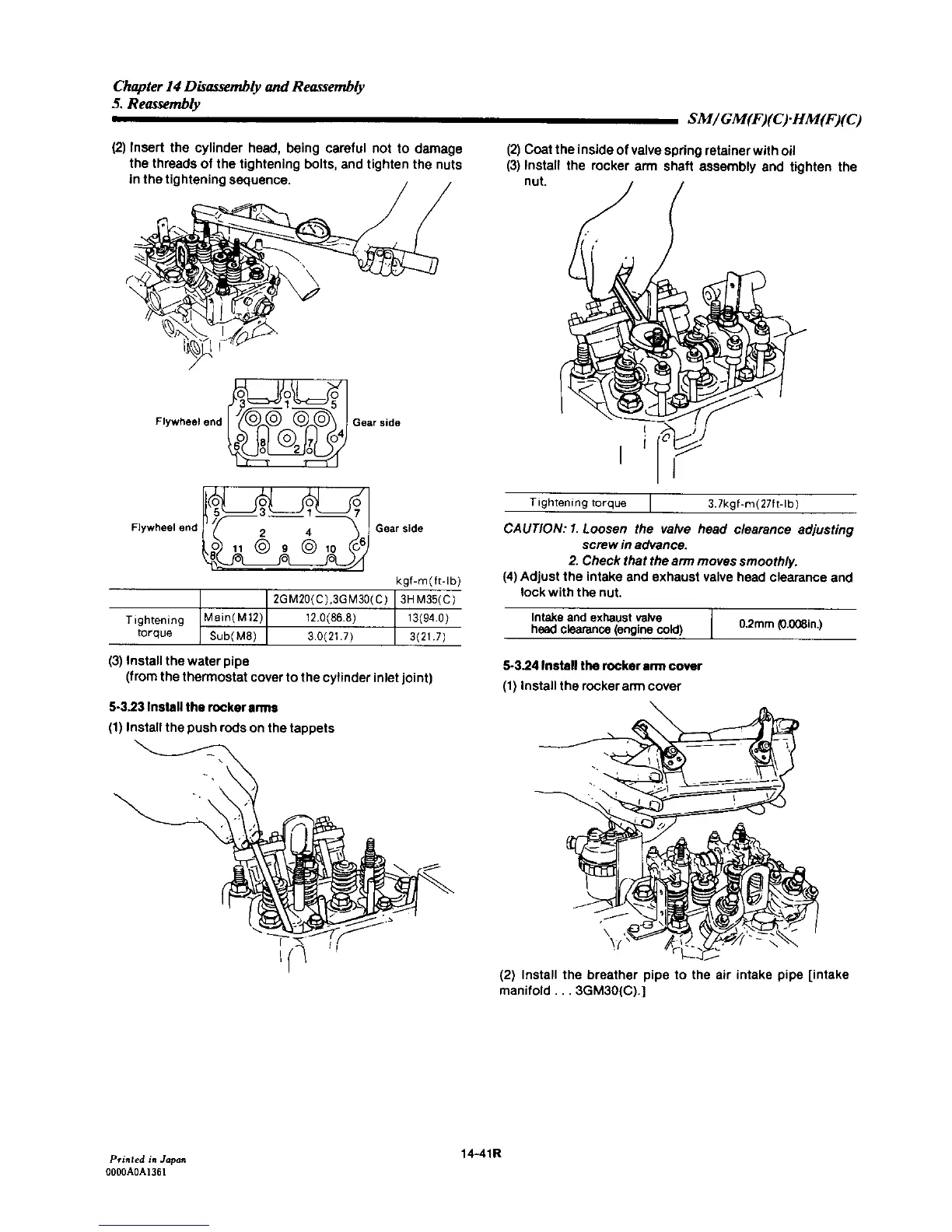 Yanmar 2GM20F - Install the Rocker Arms; Install the Rocker Arm Cover