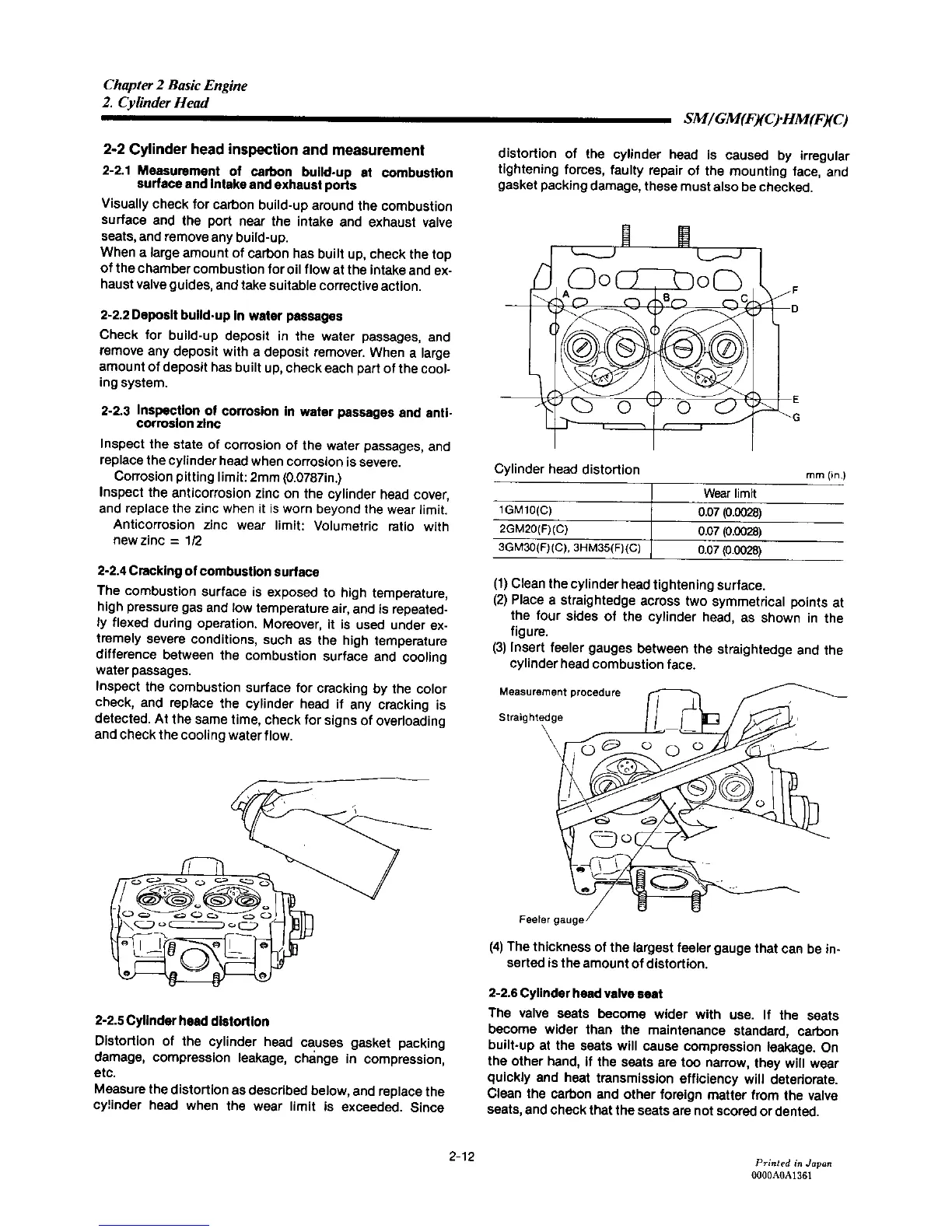 Yanmar 2GM20F - Cylinder Head Inspection and Measurement; Measurement of Carbon Build-Up at Combustion Surface and Intake and Exhaust Ports; Deposit Build-Up in Water Passages; Inspection of Corrosion in Water Passages and Anti-Corrosion Zinc