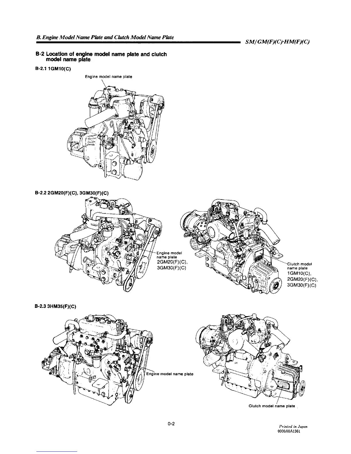 Yanmar 2GM20F - Location of Engine Model Name Plate and Clutch Model Name Plate