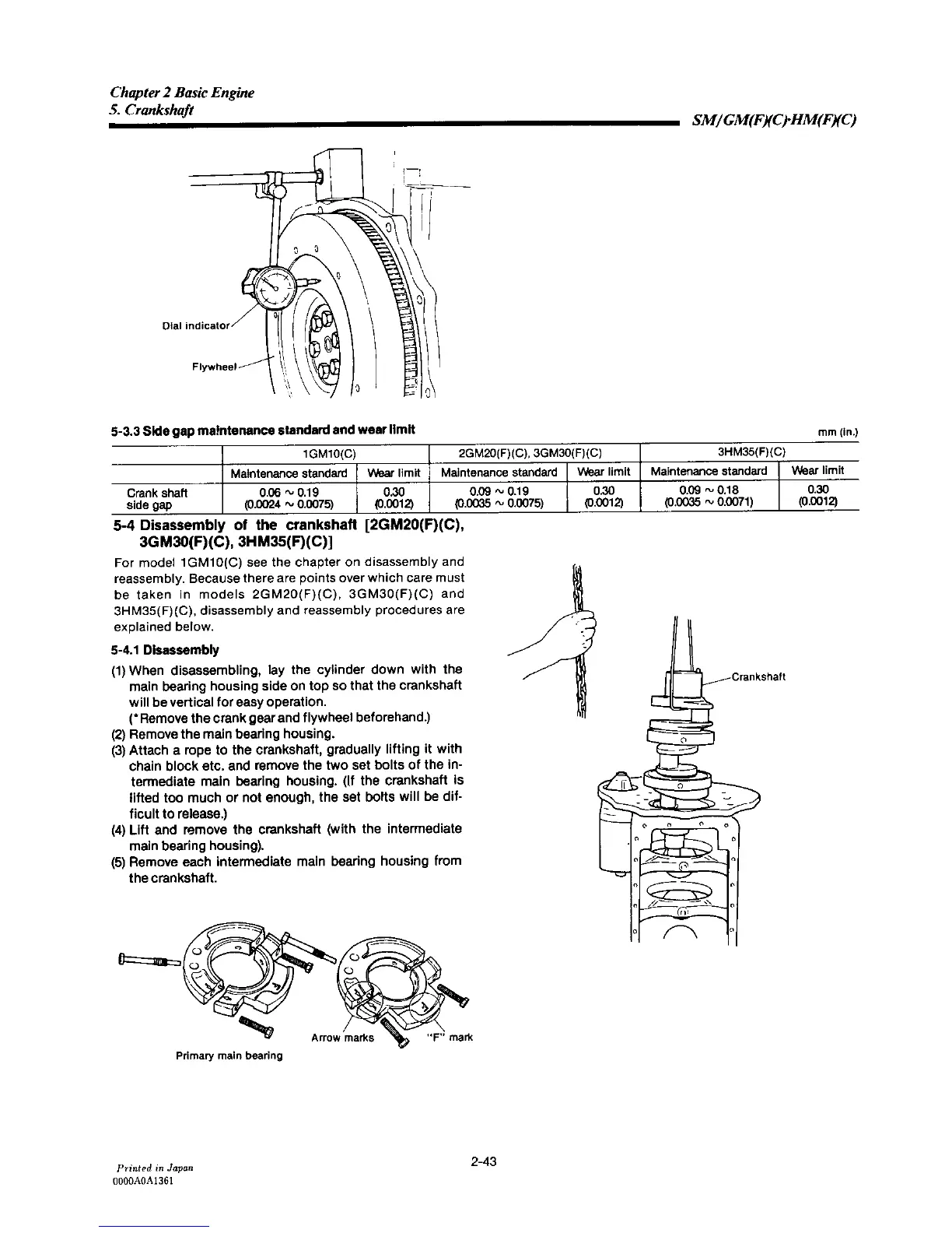 Yanmar 2GM20F - Disassembly of the Crankshaft; Side Gap Maintenance Standard and Wear Limit