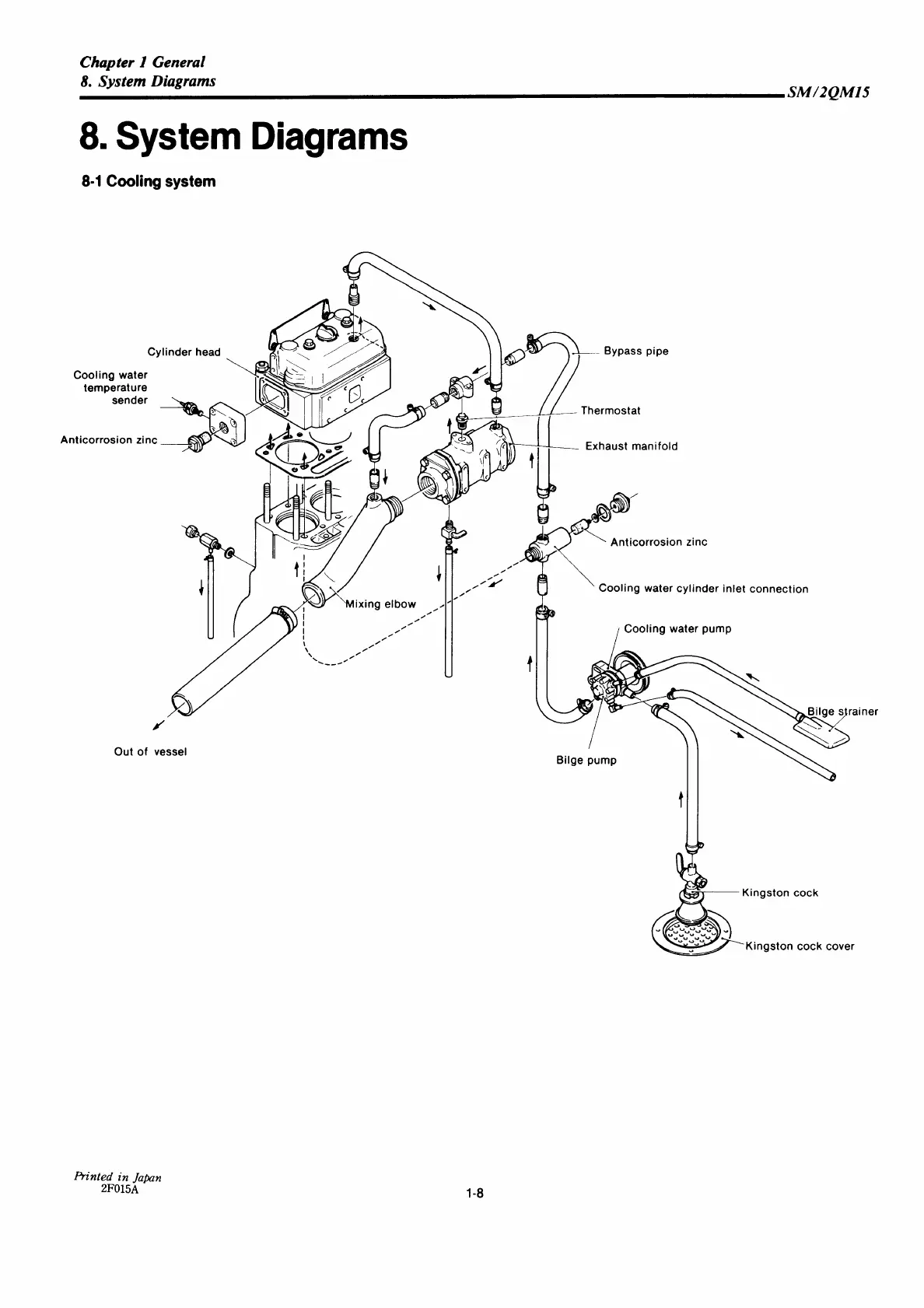 Yanmar 2QM15 - System Diagrams; Cooling System Exploded Diagram
