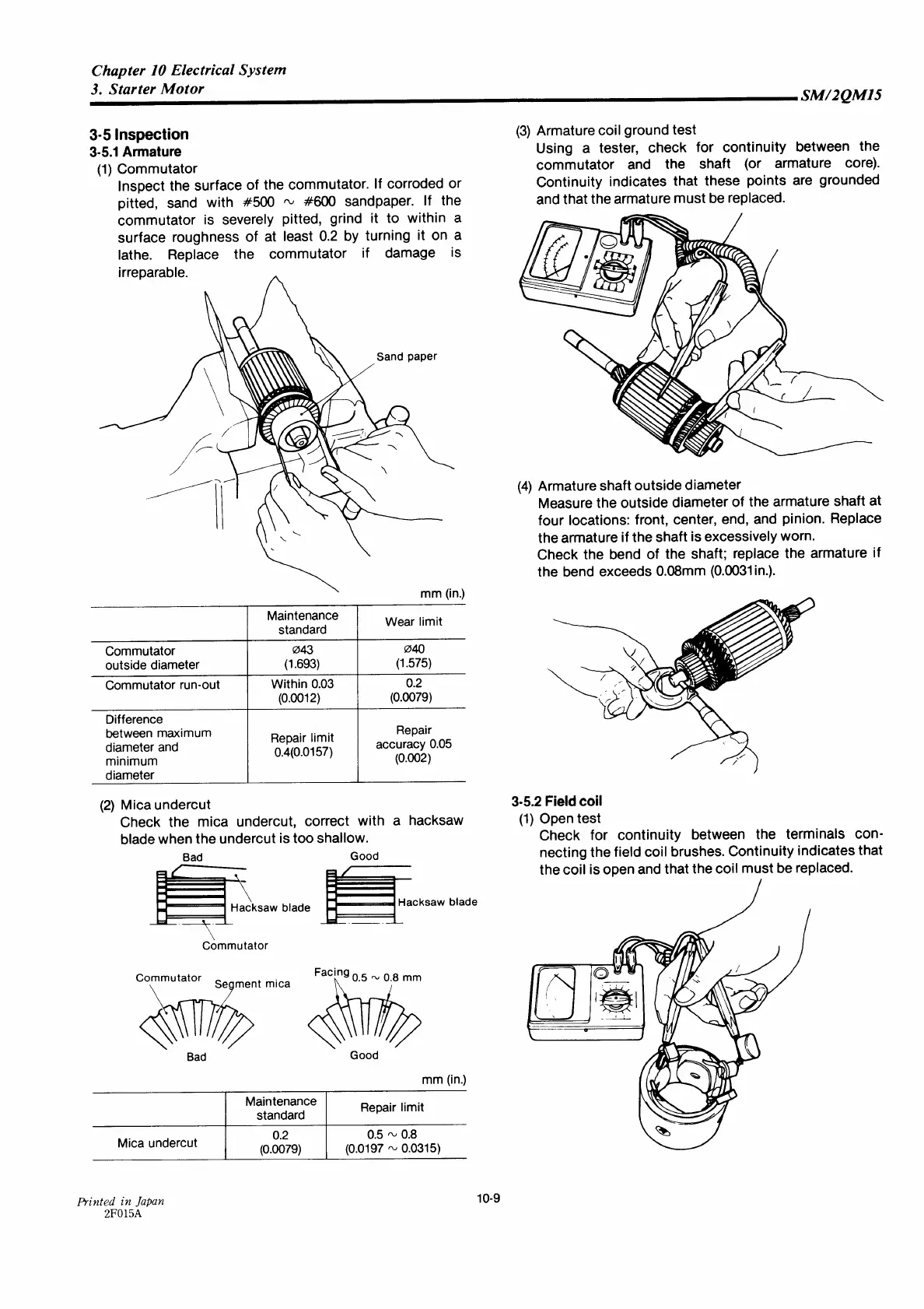 Yanmar 2QM15 - Starter Motor Inspection; Armature;Field Coil Inspection