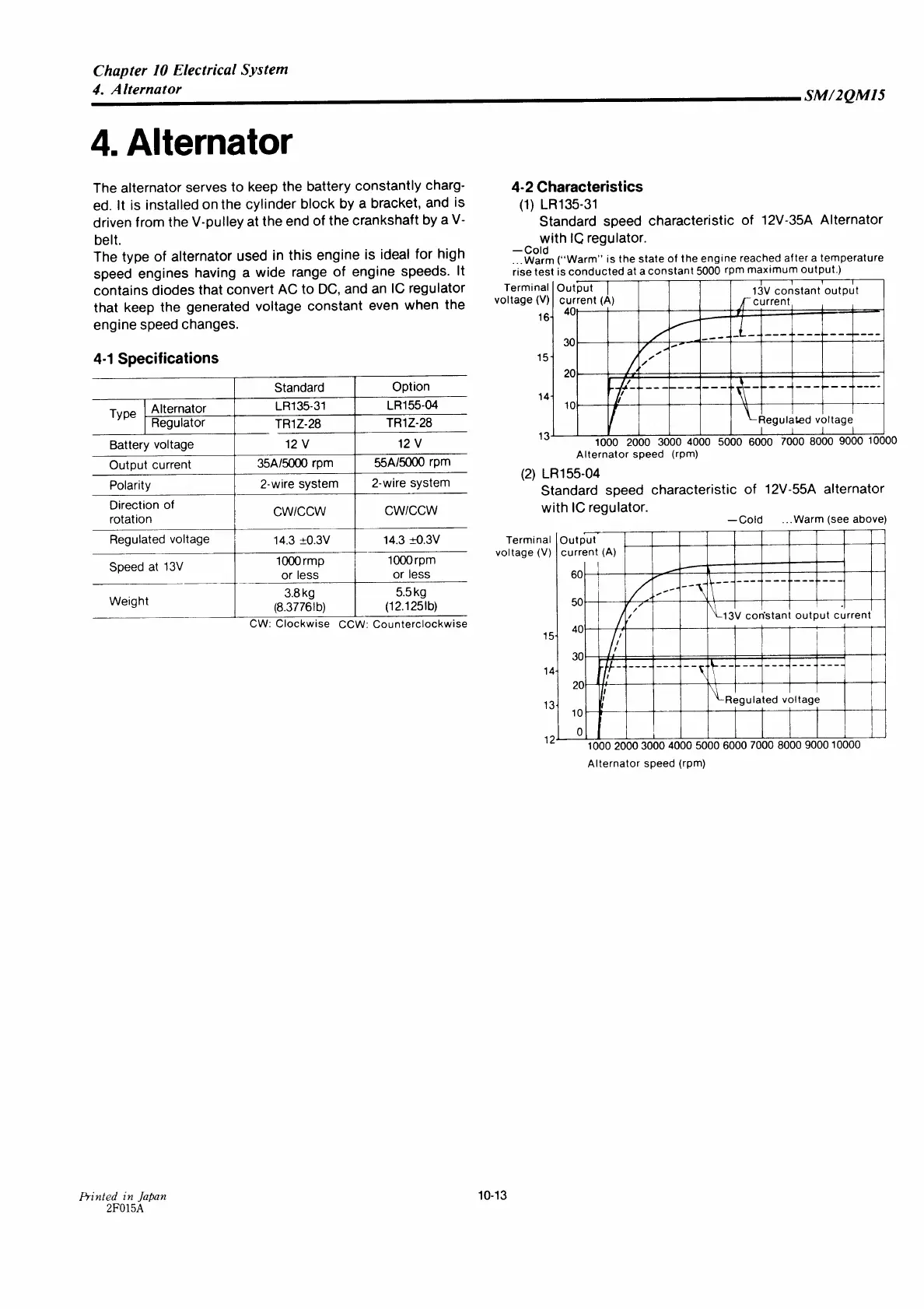Yanmar 2QM15 - Alternator Specifications;Characteristics