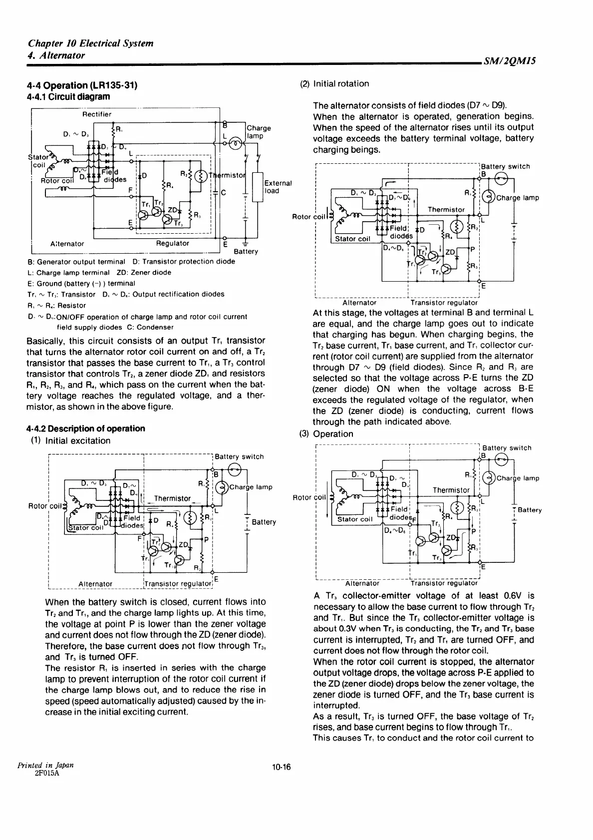 Yanmar 2QM15 - Alternator Operation; Alternator Circuit Diagram