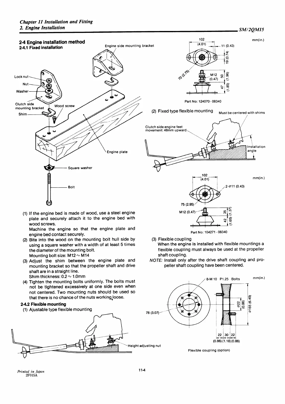 Yanmar 2QM15 - Engine Installation Method; Fixed Installation; Flexible Mounting