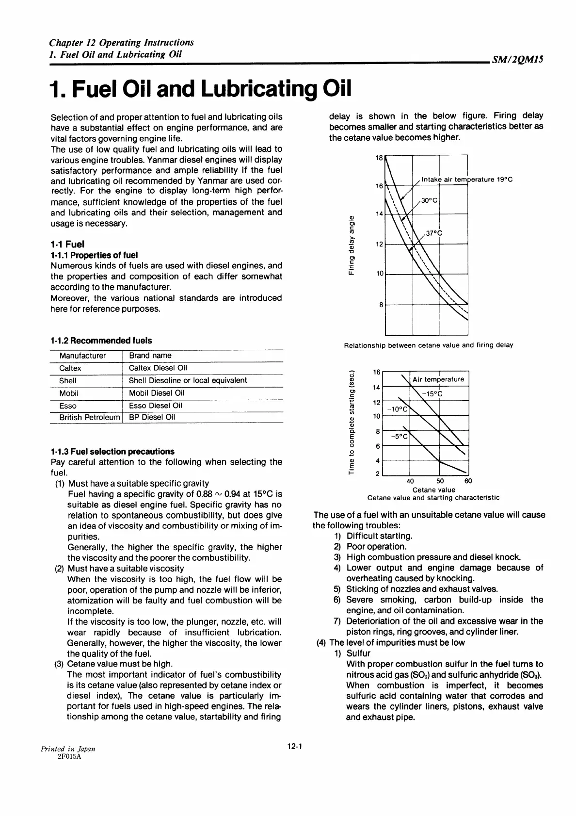 Yanmar 2QM15 - Fuel Oil and Lubricating Oil; Properties of Fuel; Recommended Fuels; Fuel Selection Precautions