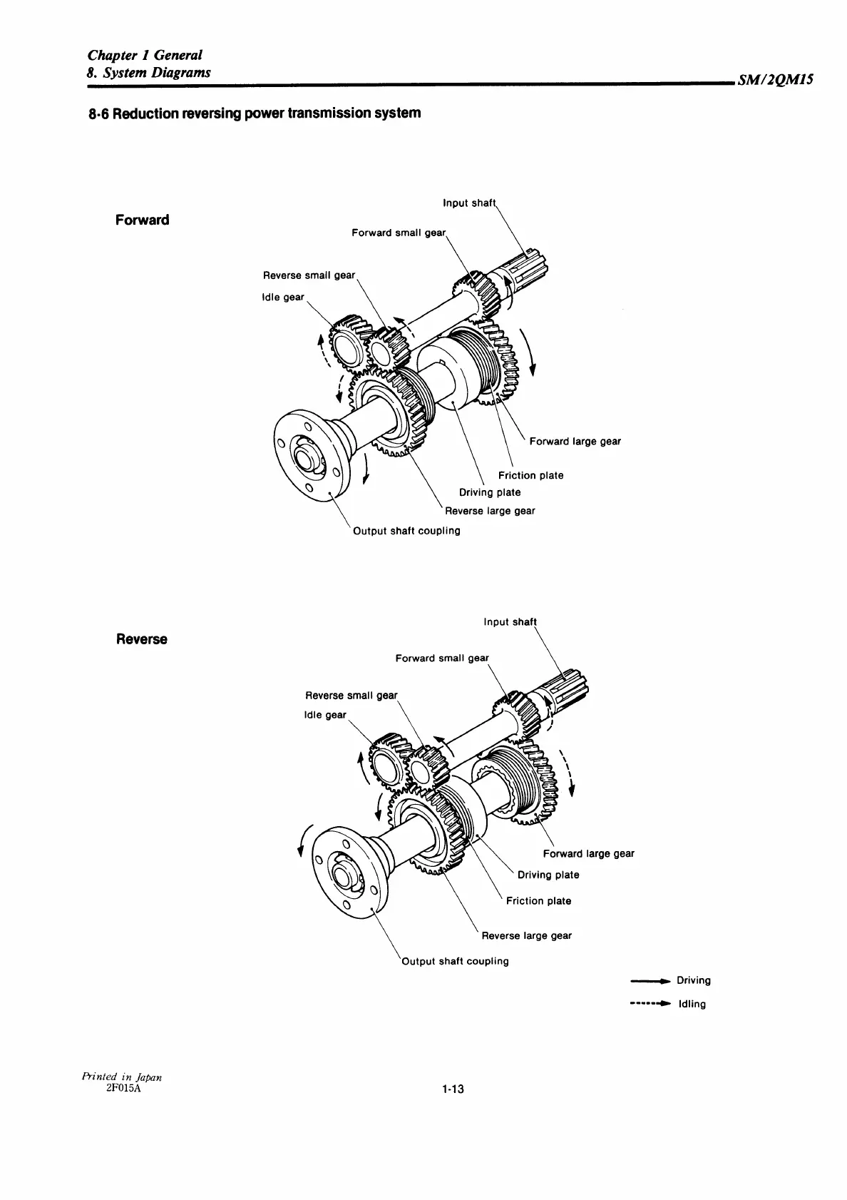 Yanmar 2QM15 - Reduction Reversing Power Transmission System Diagram