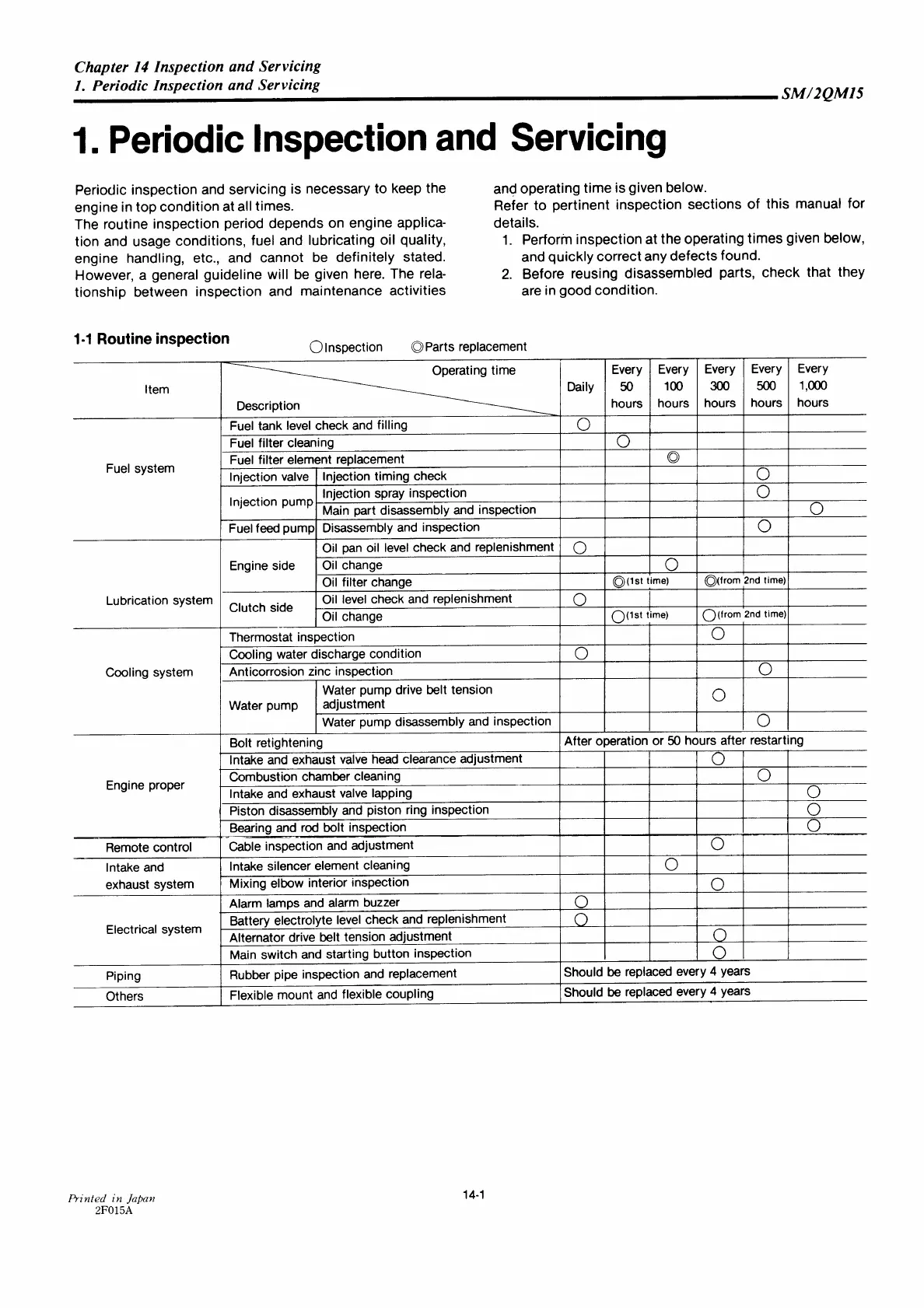 Yanmar 2QM15 - Routine Inspection Chart