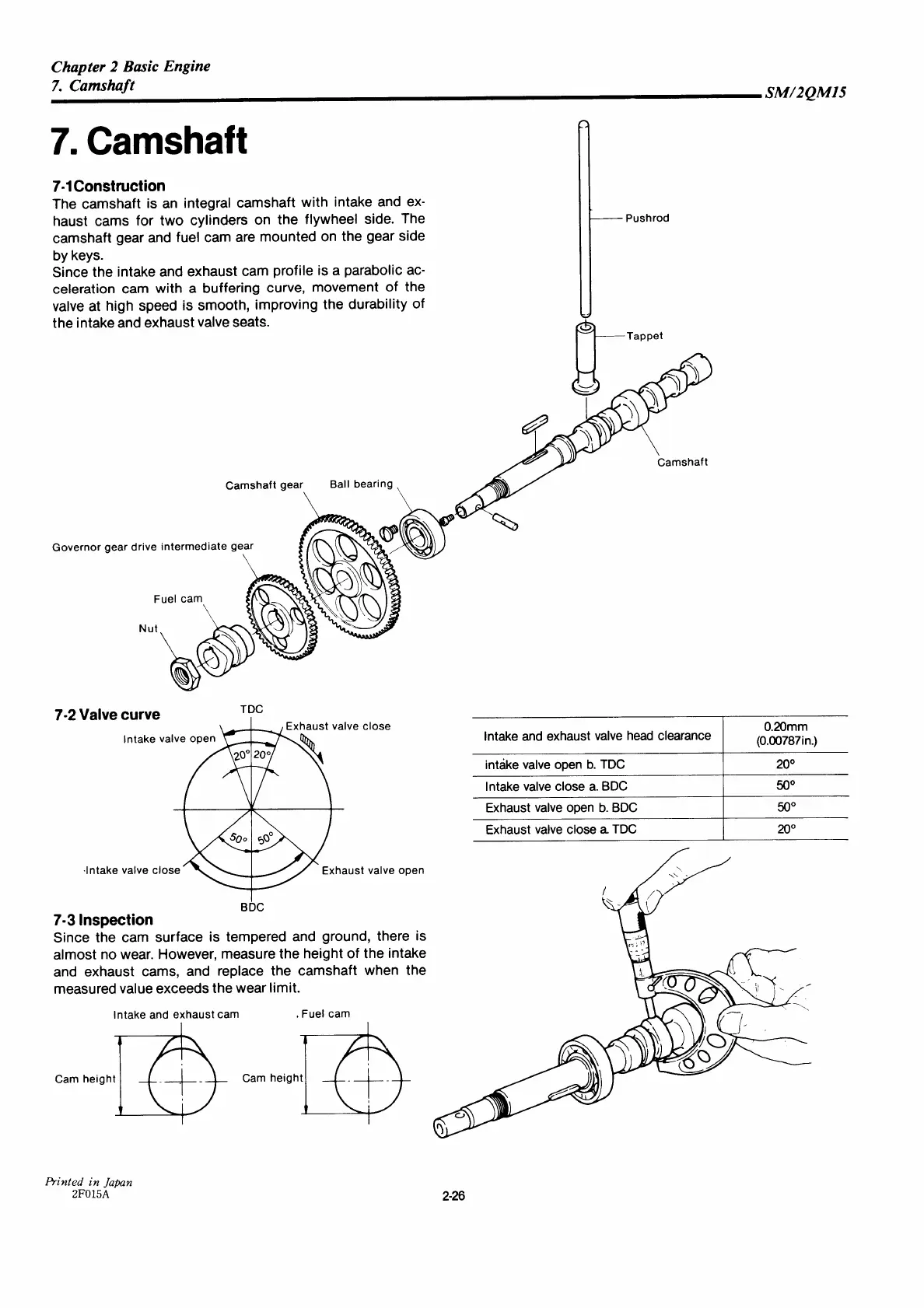 Yanmar 2QM15 - Camshaft Construction;Inspection