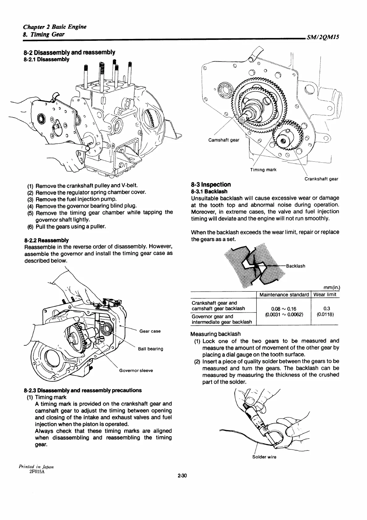Yanmar 2QM15 - Timing Gear Disassembly and Reassembly; Timing Gear Inspection; Backlash
