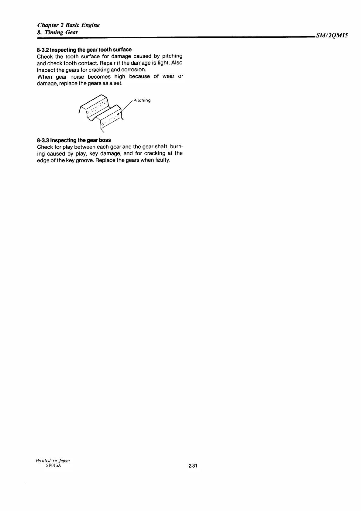 Yanmar 2QM15 - Inspecting the Gear Tooth Surface;Gear Boss