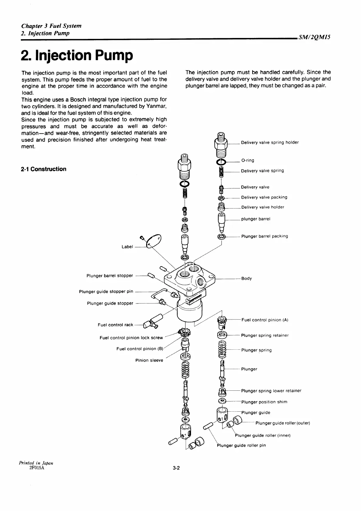 Yanmar 2QM15 - Injection Pump Construction;Diagram