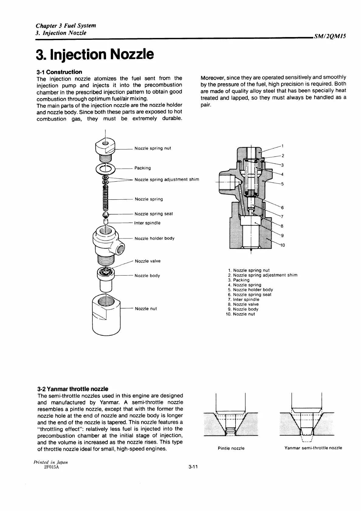 Yanmar 2QM15 - Injection Nozzle Construction;Diagram; Yanmar Throttle Nozzle