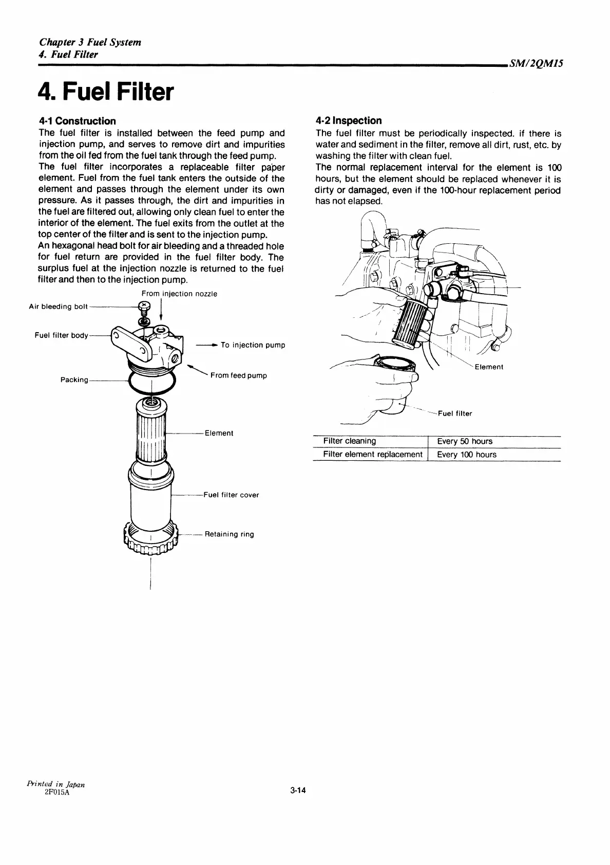 Yanmar 2QM15 - Fuel Filter Construction;Diagram;Inspection