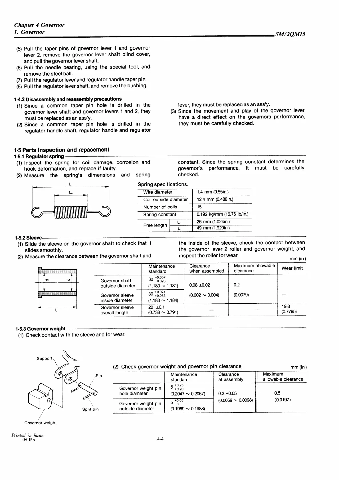 Yanmar 2QM15 - Parts Inspection and Replacement; Regulator Spring; Sleeve; Governor Weight