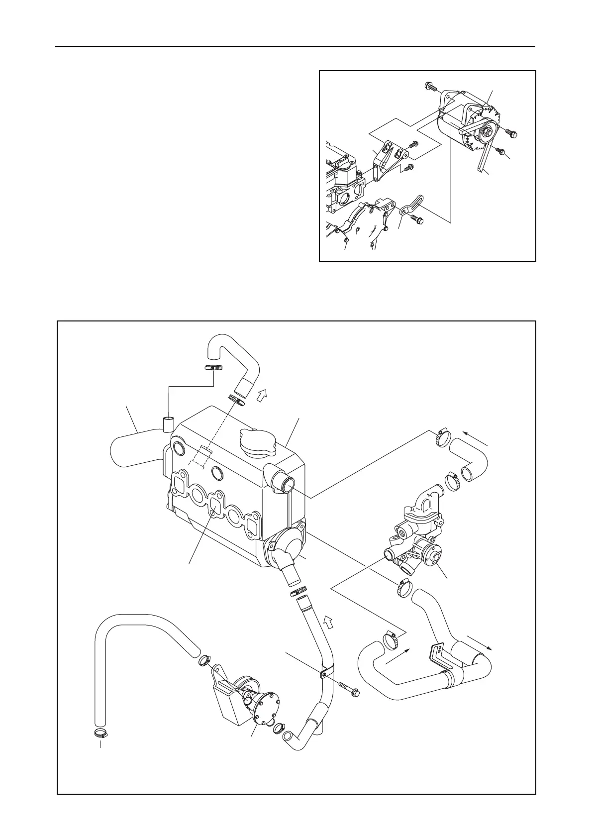 2) Remove the fresh water pipe (fresh water pump - heat exchanger, coolant tank - fresh water pump).