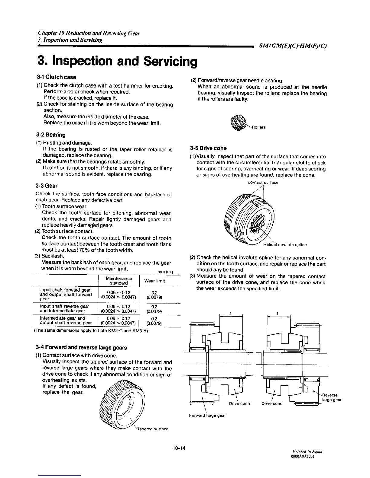 Yanmar 3GM30C - Inspection and Servicing; Clutch Case; Bearing; Gear