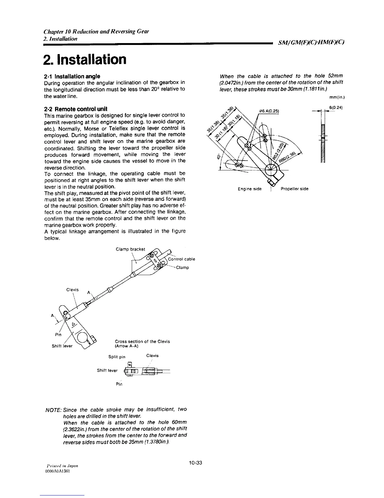 Yanmar 3GM30C - Reduction and Reversing Gear Installation; Remote Control Unit