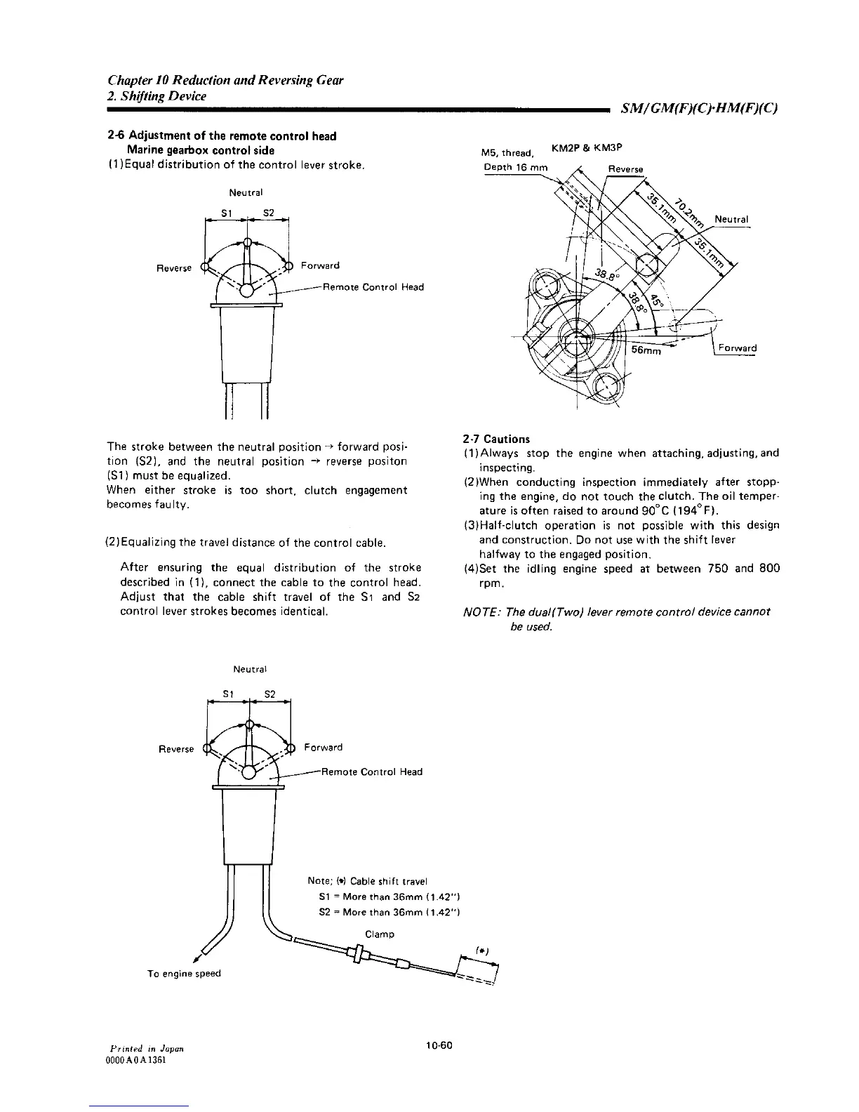 Yanmar 3GM30C - Adjustment of the Remote Control Head; Marine Gearbox Control Side