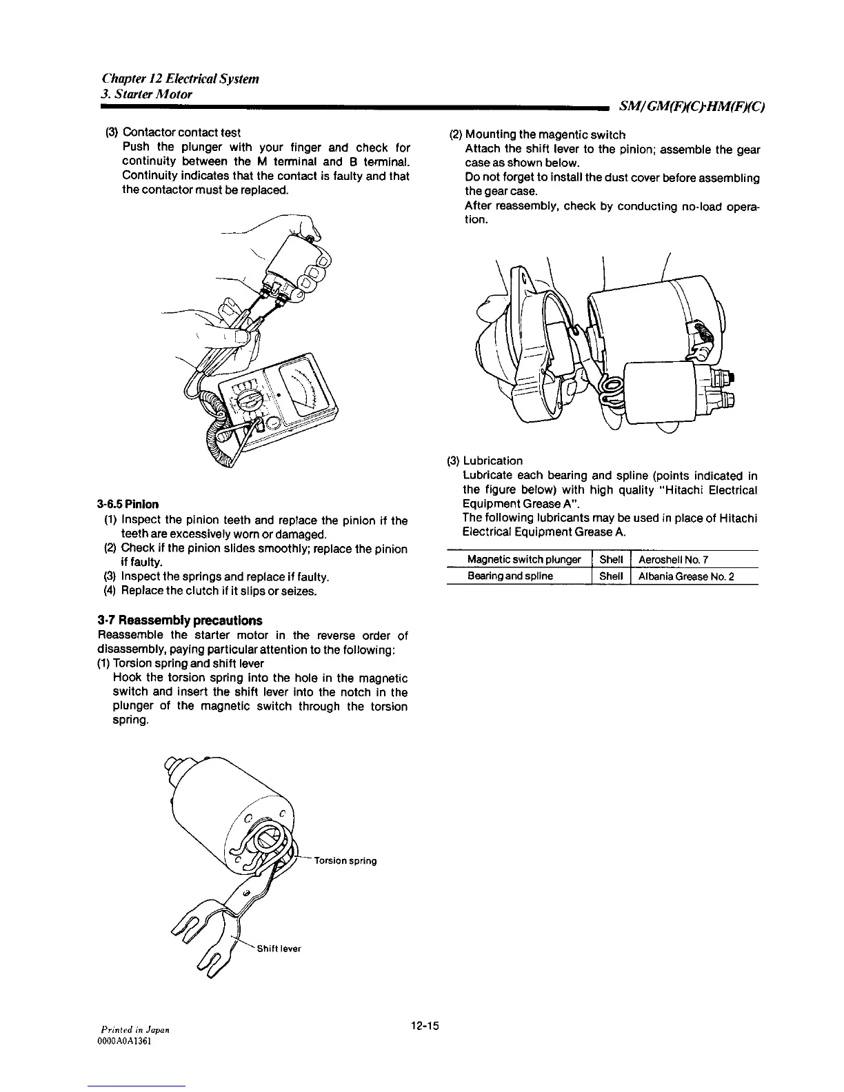 Yanmar 3GM30C - Starter Motor Reassembly Precautions