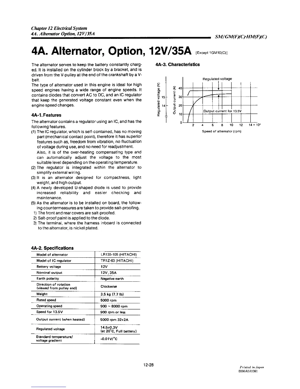 Yanmar 3GM30C - Alternator, Option, 12 V;35 A