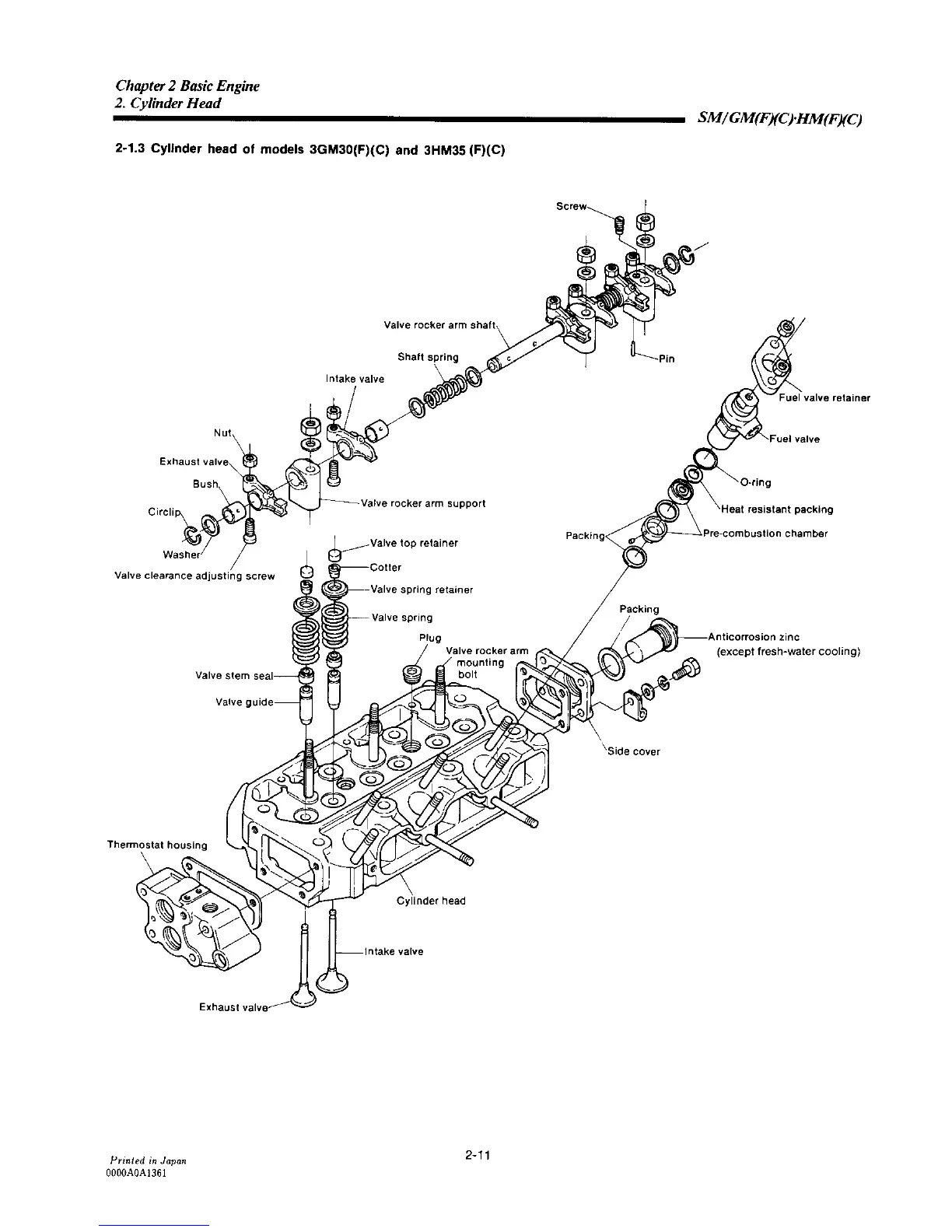 Yanmar 3GM30C - Cylinder Head of Models 3 GM30(F)(C) and 3 HM35(F)(C)